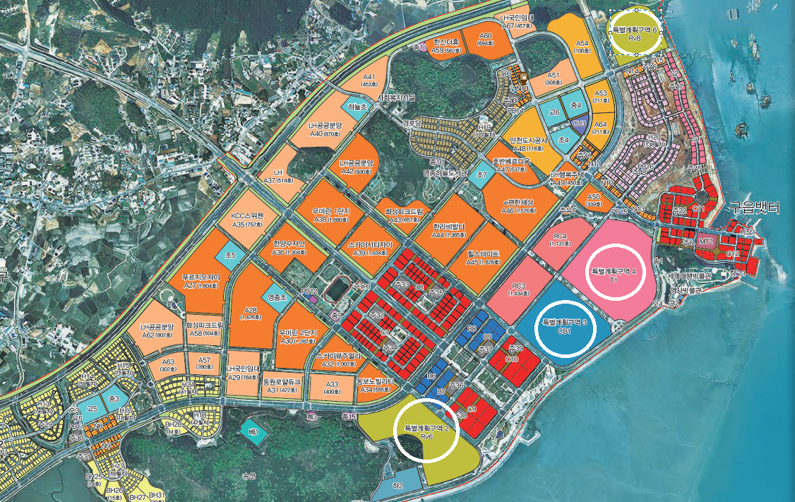 현재 하늘도시에는 7개의 특별계획구역이 있으며 개발이 진행된 곳은 하나도 없으며 최근에 RV6 구역등이 개발이 가시화되는 상황입니다.