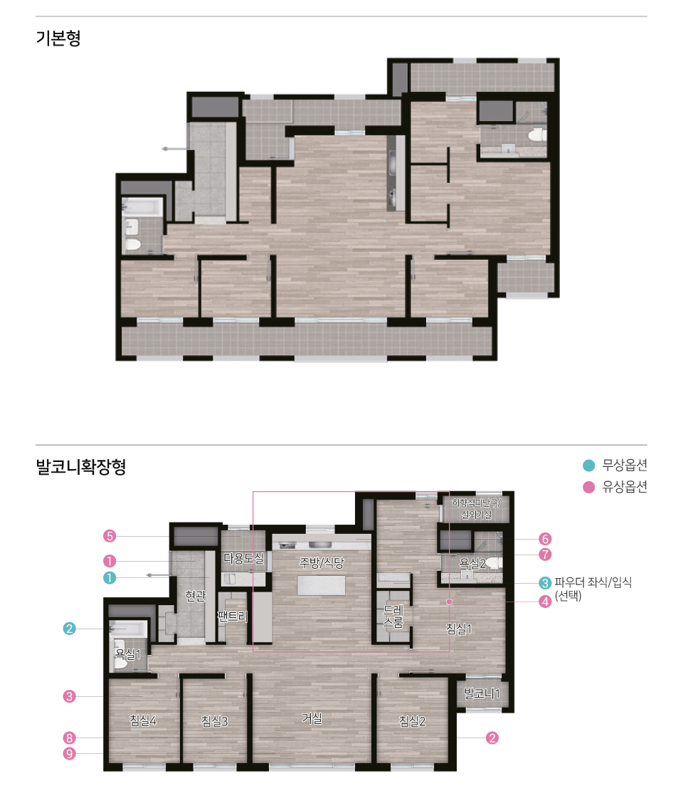 다른 Type과 마찬가지로 넉넉한 현관 사이즈에 현관 팬트리를 적용한 점도 좋습니다. 부부욕실의 샤워공간이 다소 작아 보이는 점, 욕실에 창이 없는 점 등은 여전히 아쉬운 부분입니다.
