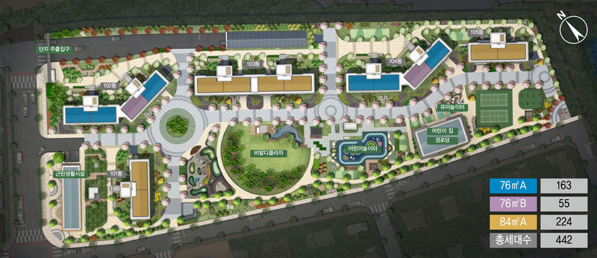 76A Type 163 세대, 76B Type 55 세대, 84A Type 224세대로 전체 442세대입니다.