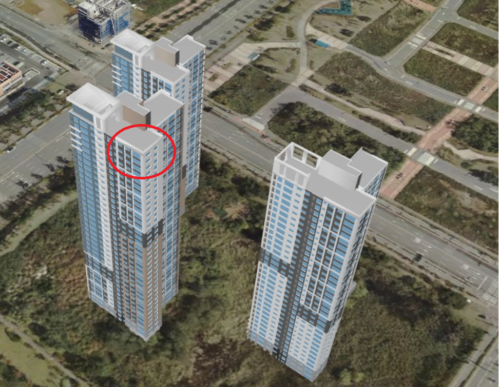 우선 경관심의에 올라온 조감도를 보면 남서향/남향 구성입니다. 남서향은 현재는 빈 땅이지만 옆 주상복합과 고층건물이 들어서는 특별계획구역이 위치하여 바다 뷰 영구 조망이 어렵습니다. 바다 뷰 영구 조망이 아닌데 왜 남서향으로 향을 냈는지는 좀 의문스럽습니다. 일부세대는 남향이라 그래도 영구 바다 뷰는 나올 것 같습니다. 남동향으로 냈으면 가리는 건물이 없어 모든 세대가 충분한 영구 바다 뷰가 나올 것 같은데 짧은 제 식견으로는 아쉽기만 합니다.