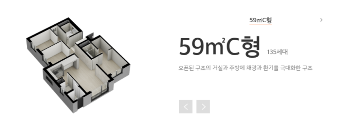 전가구 전용면적 59m2(24~25평) 822세대로 구성되며 공급의 75%가 특별공급으로 공급되는 LH가 주관하는 민간참여 공공분양형태의 사업구조를 갖는다. 분양가 상한제와 평수 구성 그리고 공공분양의 성격으로 볼 때 신혼부부와 2~3인 가구 무주택자들에게는 좋은 내집마련의 기회로 판단된다.