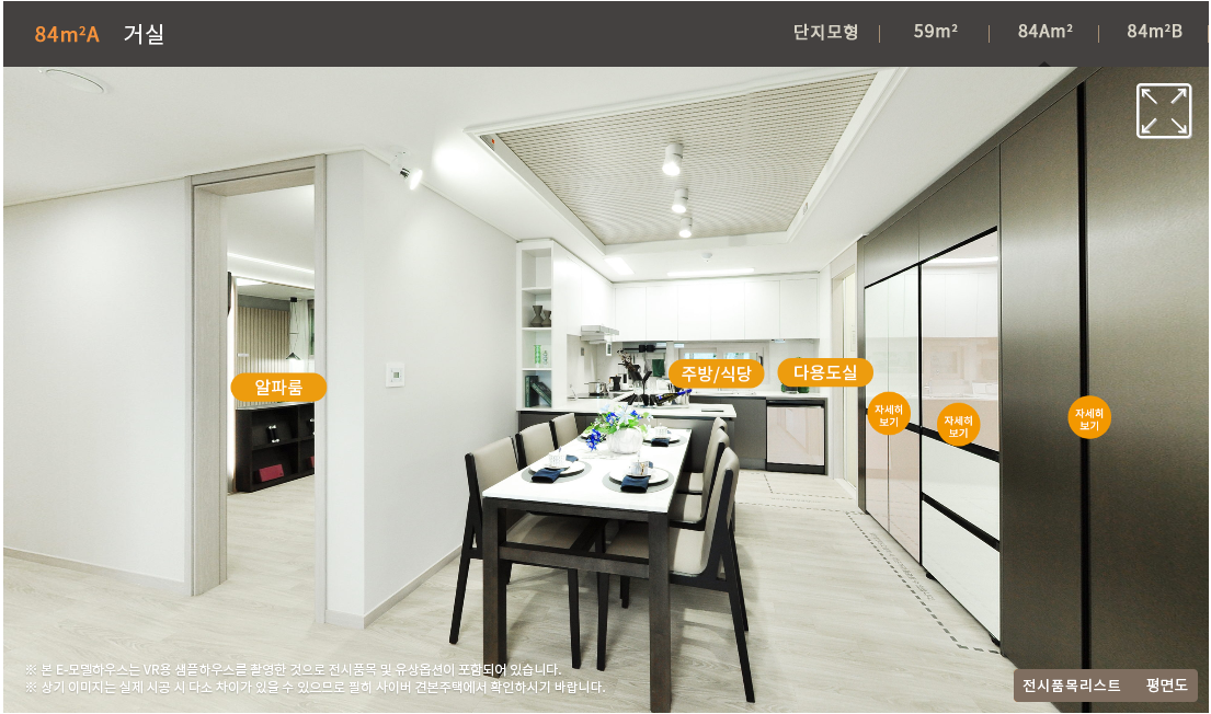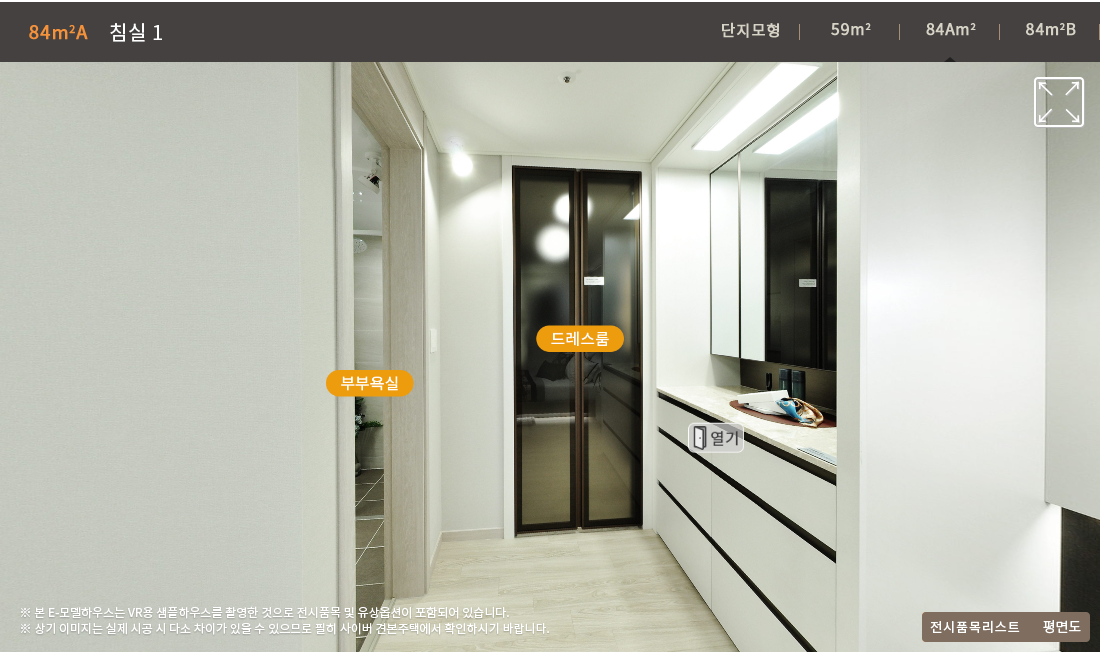 오늘 모집공고가 나온 두산위브 광주센트럴파크 아파트 59Type과 84A Type의 VR(e-모델하우스)을 보고 주요 특징을 개인적인 관점에서 Review해 보았습니다. 단위세대 평면 Review는 아래 링크를 확인 부탁드립니다.