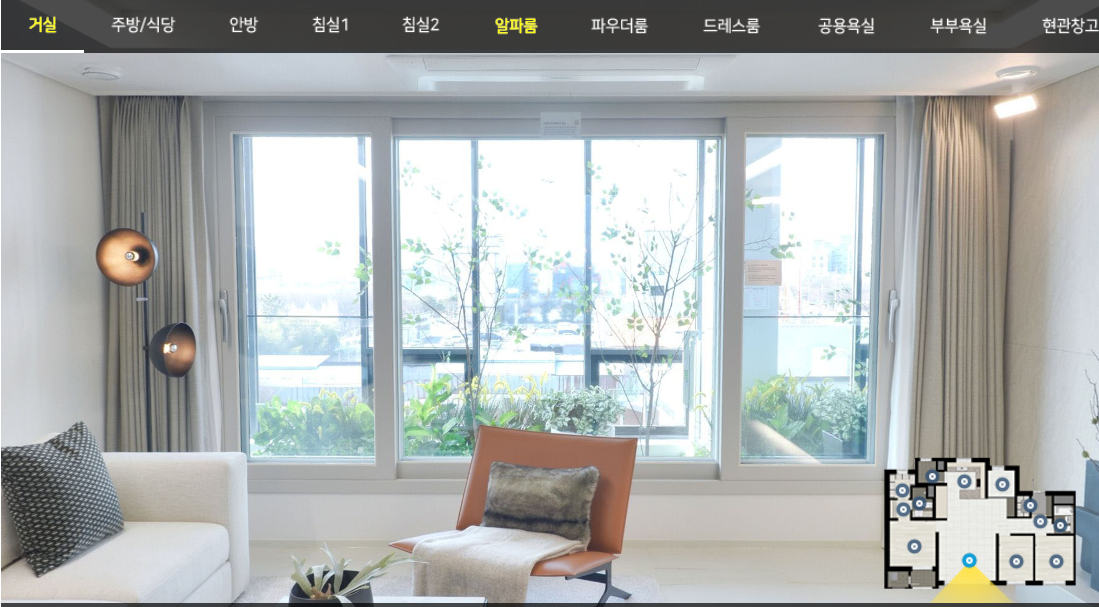 드레스룸에는 창이 크게 나 있어 안방 발코니를 통한 맞통풍 구조로 환기에 좋을 것 같습니다. 알파룸은 폭이 작아 침실을 대체하기에는 무리이며 수납공간 확장 , 말 그대로 다목적실의 용도로 사용하면 좋을 것 같습니다.
