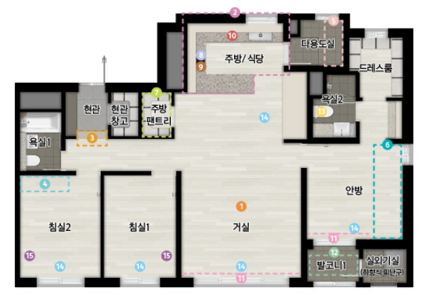 아래와 같은 특징이 반영된 설계라면 실 거주 입장에서 아주 편리할 것으로 생각됩니다.