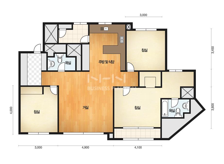 판상형 구조는 3베이 구조 , 타워형 타입은 LDK 구로 (아쉽게도 거실 양면창 구조는 아닙니다.)로 거실폭은 동일하게 4m 90으로 요즘 분양하는 같은 면적의 아파트 보다 (4 m50) 40cm 정도 더 넓으며 안방의 폭도 4 m10으로 마찬가지로 요즘 분양하는 아파트보다(3 m60) 50cm 더 넓습니다.