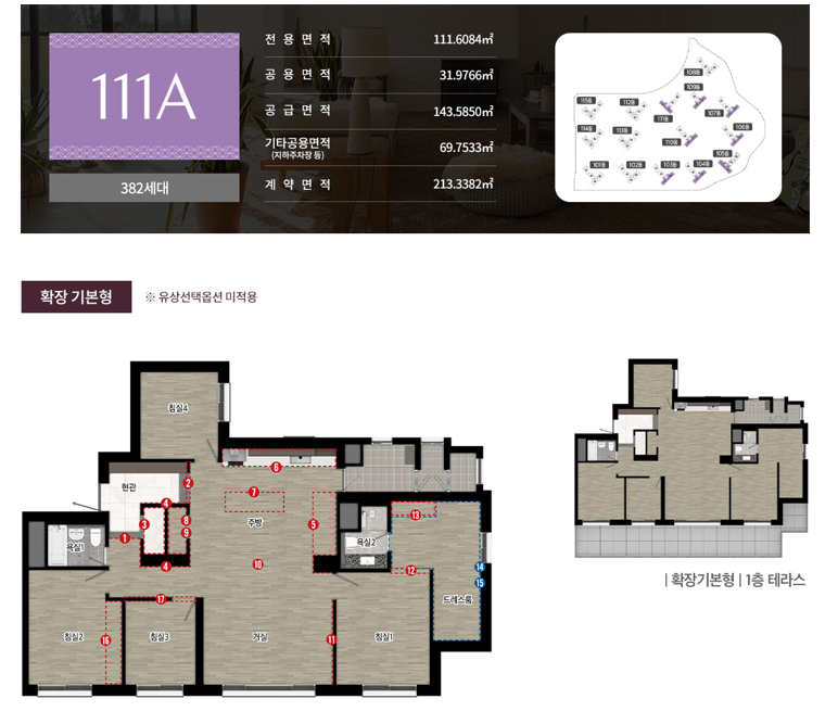 111A Type입니다. 대형 평수답게 4.5 베이 판상형 구조입니다.