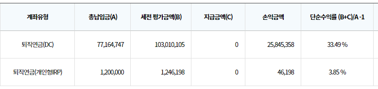 현재 2022.03월 기준 상품보유비율은 아래와 같습니다. 코람코 에너지 리츠 유상증자 청약을 위해 한 종목 집중 투자한도 초과 방지를 위해 코람코 에너지 리츠를 조금 매도하였고 이지스 밸류 리츠가 배당을 포함한 수익률이 20%를 넘어 일부 매도하여 코람코 에너지 리츠 재원으로 사용하도록 현금화하였습니다. 제이알 리츠 글로벌 리츠는 30% 집중투자한도에 걸려 퇴직금 및 추가부담금이 입금될 때마다 아주 조금씩밖에 추가 매수가 안되는데 최근 주가 상승으로 비율이 조금 커졌습니다. 유상증자 재원 마련을 위한 일부 매도 및 1/4 분기 퇴직금과 3월 추가부담금, 코람코 에너지 리츠 배당금 입금으로 현금성 자산이 대폭 증가하였습니다.