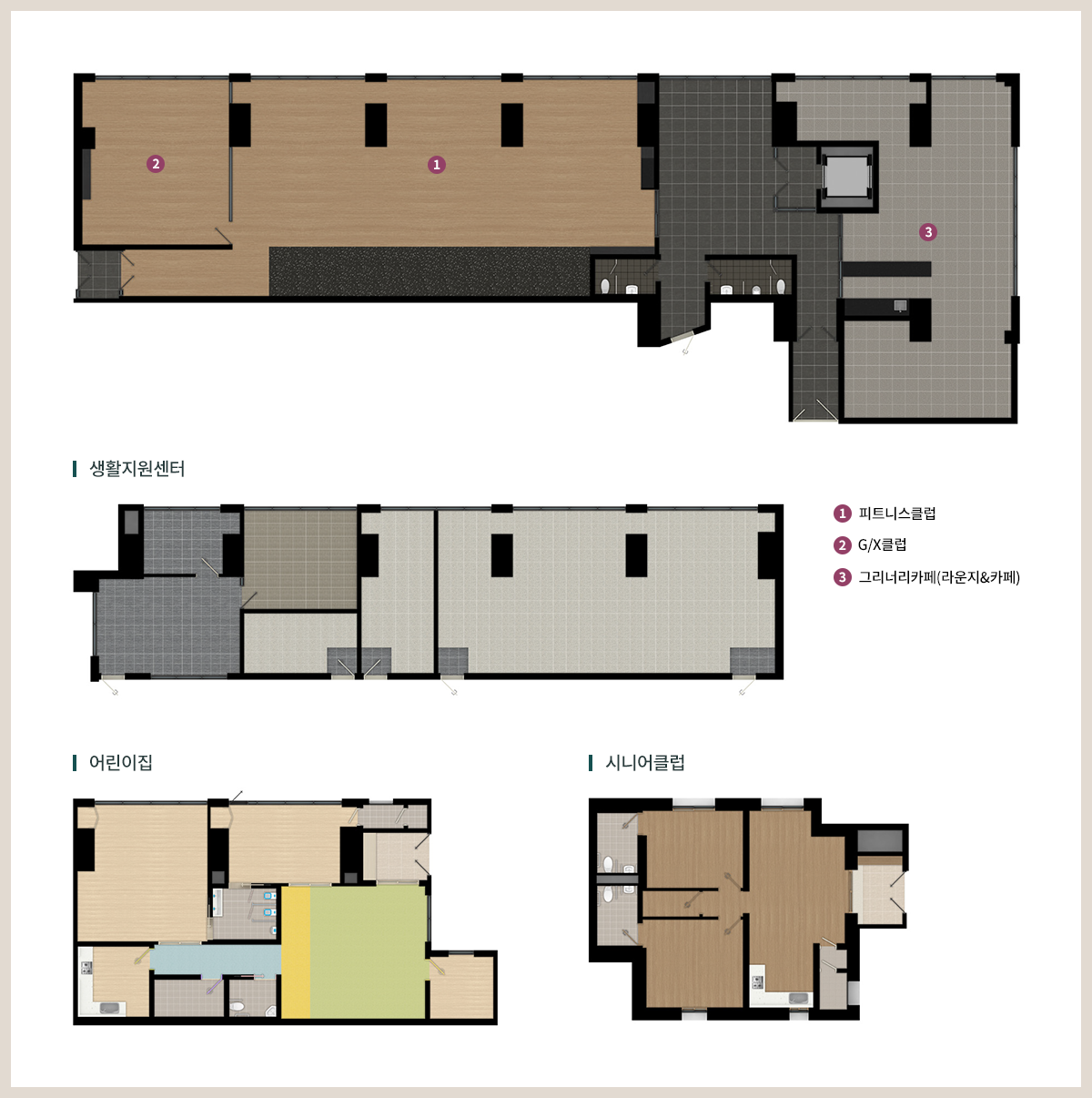 세대수가 많지 않기 때문에 피트니스클럽,GX룸 어린이집, 시니어클럽 등의 일반적인 수준의 커뮤니티 시설을 제공하고 있으며 그리너리 카페라고 입주민간 친목과 휴식을 위한 커뮤니티 공간도 제공합니다.