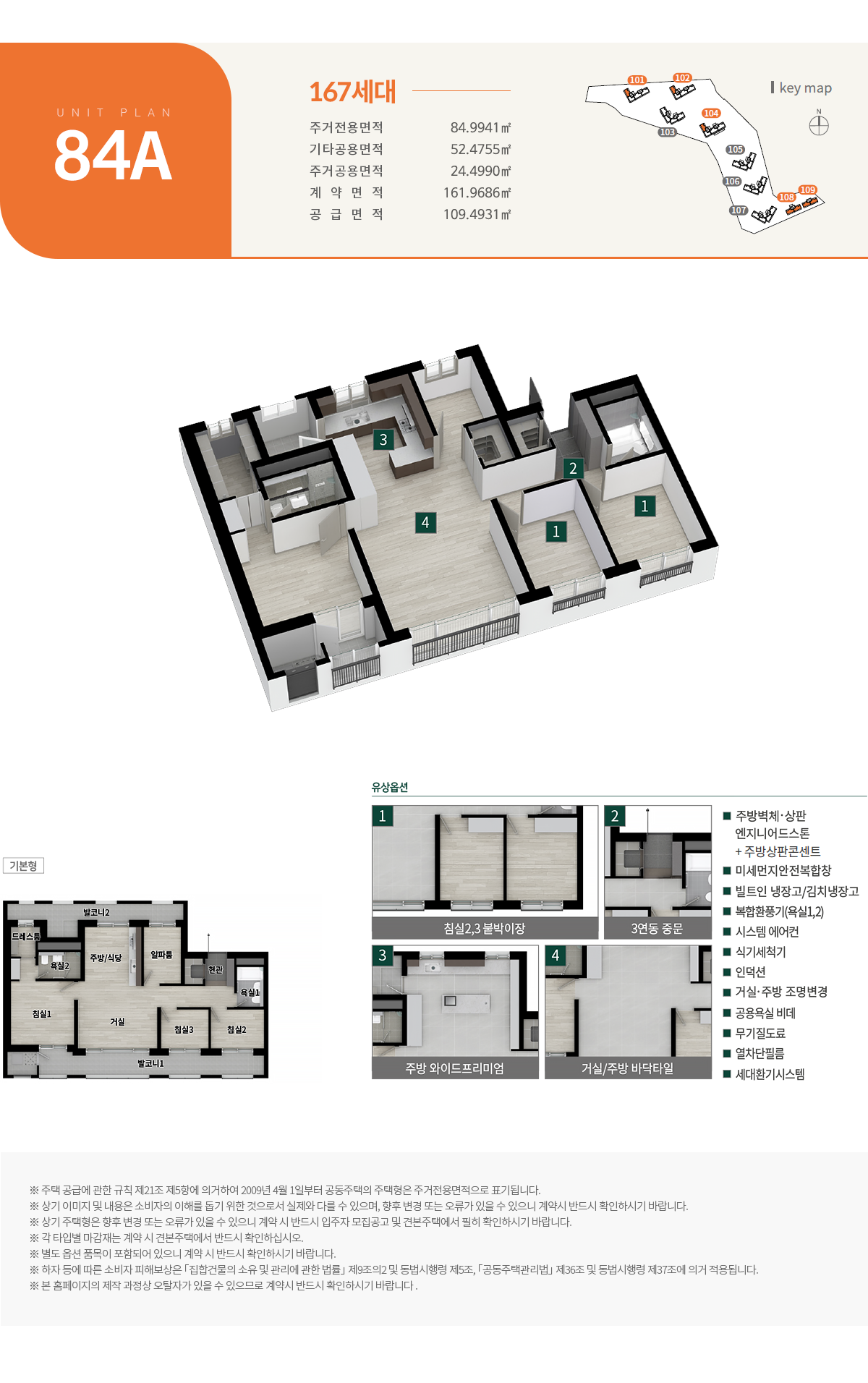 84A Type을 기본 설계로 평형이 커지면서 사이즈만 비례하여 키운 평면으로 보입니다 큰 차이가 없습니다. 드레스룸 공간이 커진 것이 눈에 띄며 치수가 안 나왔지만 모든 공간이 84A Type에 비례하여 조금씩 커졌을 것으로 보입니다.