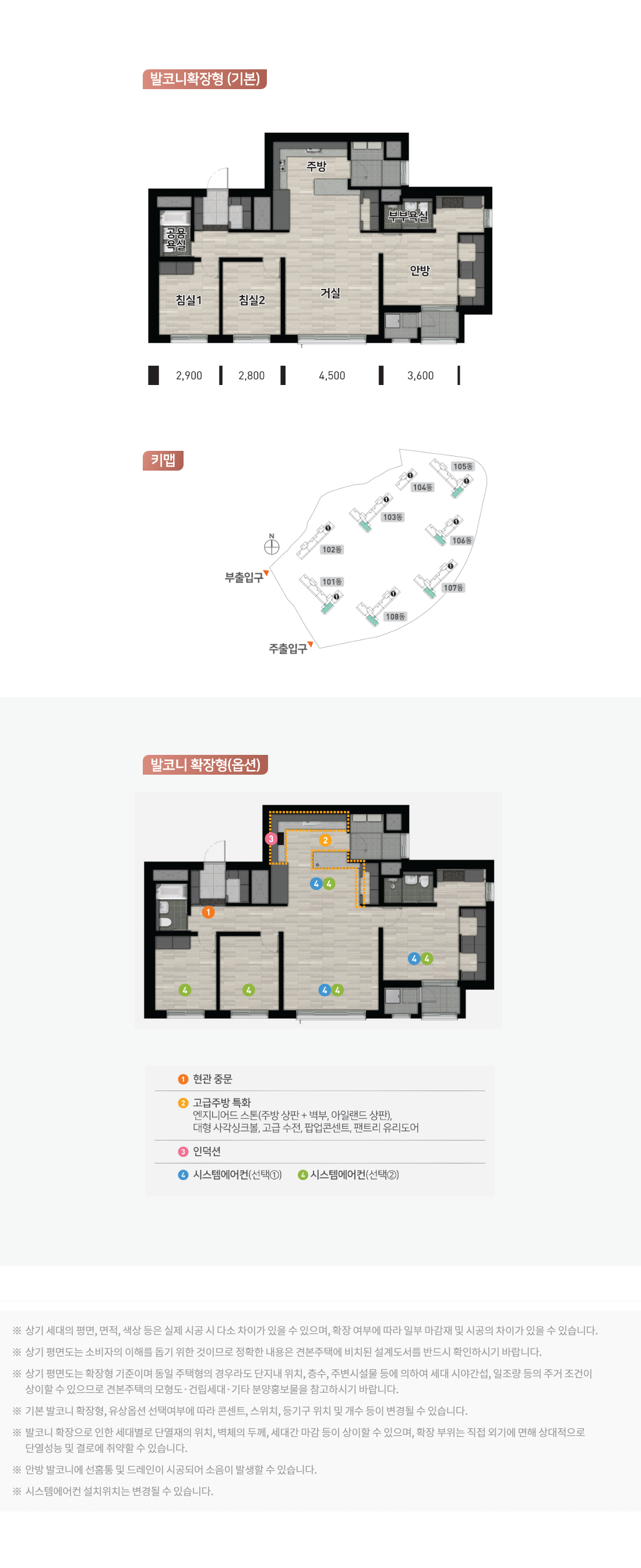 후면 발코니 확장 대신 안방 측면 발코니 확장을 적용한 평면입니다.