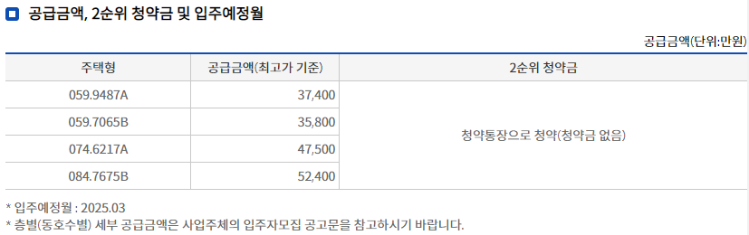 전용면적 59m 2의 경우 옵션을 포함한 부대비용 전체 다 포함하여 약 4억 원선, 74m2의 경우 5억 원선, 84m 2의 경우 6억 원에 근접합니다. 현재 부동상 경기를 감안할 때 약간 높은 분양가로 배팅하였다고 볼 수 있는데 워낙 입지와 생활환경이 좋은 곳이라 수요도 만만치 않을 것으로 보여 경쟁률이 궁금해집니다.