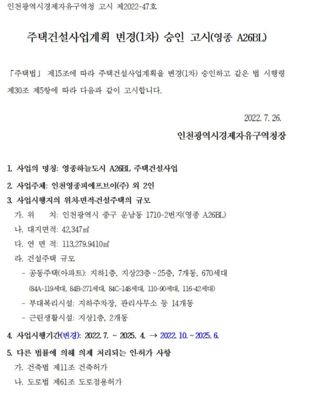 2022년에 민간분양으로 예정된 영종하늘도시 A11,A14,A26,A61 블록 4개 단지의 사업계획 변경 승인 고시가 7.26일 올라왔습니다. 예상 일정보다 5개월 정도 지연이 되어 2022년 말 경에 분양이 시작될 것으로 보입니다. 청약을 검토하시는 분들은 위치 및 단지별 세대 구성은 아래를 참고하시기 바랍니다.