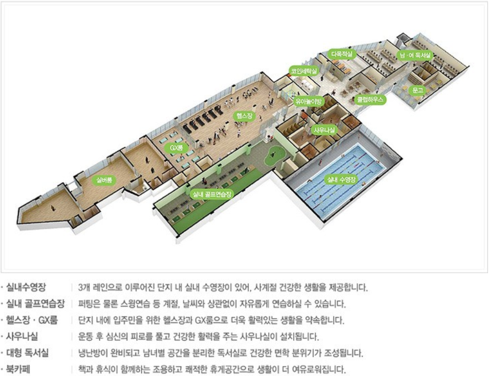 앞서 포스팅한 우미린 2단지 아파트와 같은 건설사에 의해 동시에 지어진 관계로 우미린 1단지 아파트에서도 하늘도시(혹은 전국 20평형대 아파트)에서 유일한 수영장을 가지고 있으며 이 밖에 게스트하우스, 최상층에 있는 입주민 카페테리아, 코인세탁실, 헬스장, 사우나실, 독서실, 게스트하우스 등의 커뮤시티 시설을 갖추고 있으며 조경으로도 아주 뛰어난 아파트입니다.
