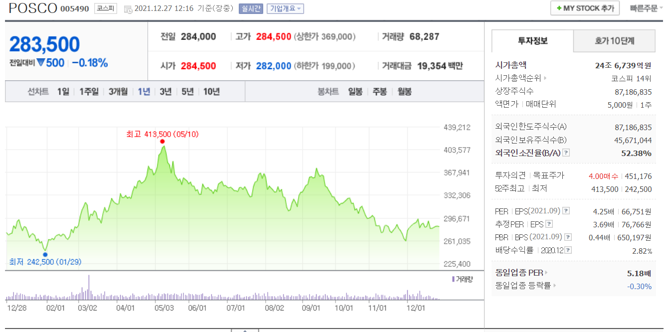 | POSCO (005490) 창사이래 사상 최대 잠정 실정 공시 (0) | 2022.01.12 |
