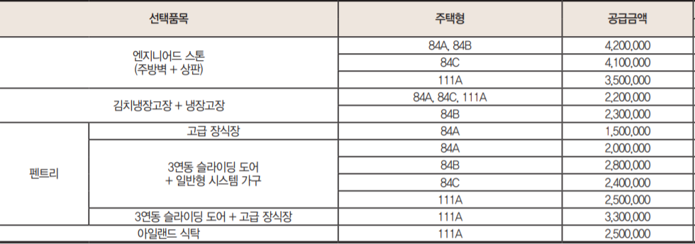 분양아파트 옵션 선택 - 검단 제일풍경채