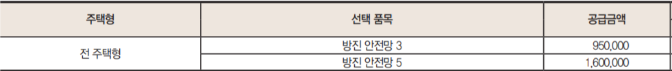 이밖에 검단 제일풍경채는 아래와 같이 방진 안전망 옵션을 포함하고 있습니다. 미세먼지필터랑 어린이 추락방지 기능이 포함되는 것으로 알고 있는데 필요성이 있는가?라는 관점에서 선택을 하지 않을 것 같은데 자금이 여유 있거나 라이프스타일과 선호도에 따라 필요하면 선택을 하면 될 것 같습니다. 3,5의 차이가 어떤지는 모집공고에 안 나와 있던데 관심 있으시면 모델하우스에 따로 확인을 해 보시길 바랍니다.