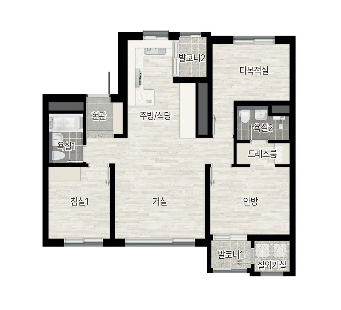 일반적으로 재개발아파트의 평면설계는 좋게 말하면 보수적이고 나쁘게 말하면 20년 전 구조를 답습하는 경우가 많습니다.