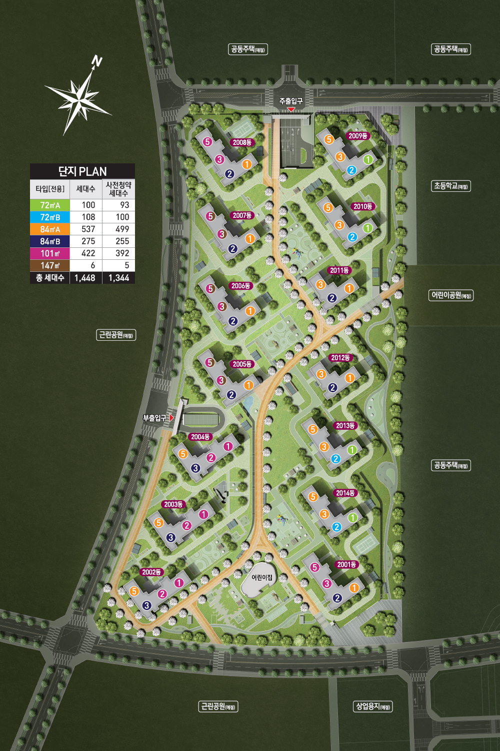 - 72A 93/100 세대, 72B 100/108 세대/ 84A 499/537 세대, 84B 255/275 세대/ 101 392/422 세대, 147 5/6 세대