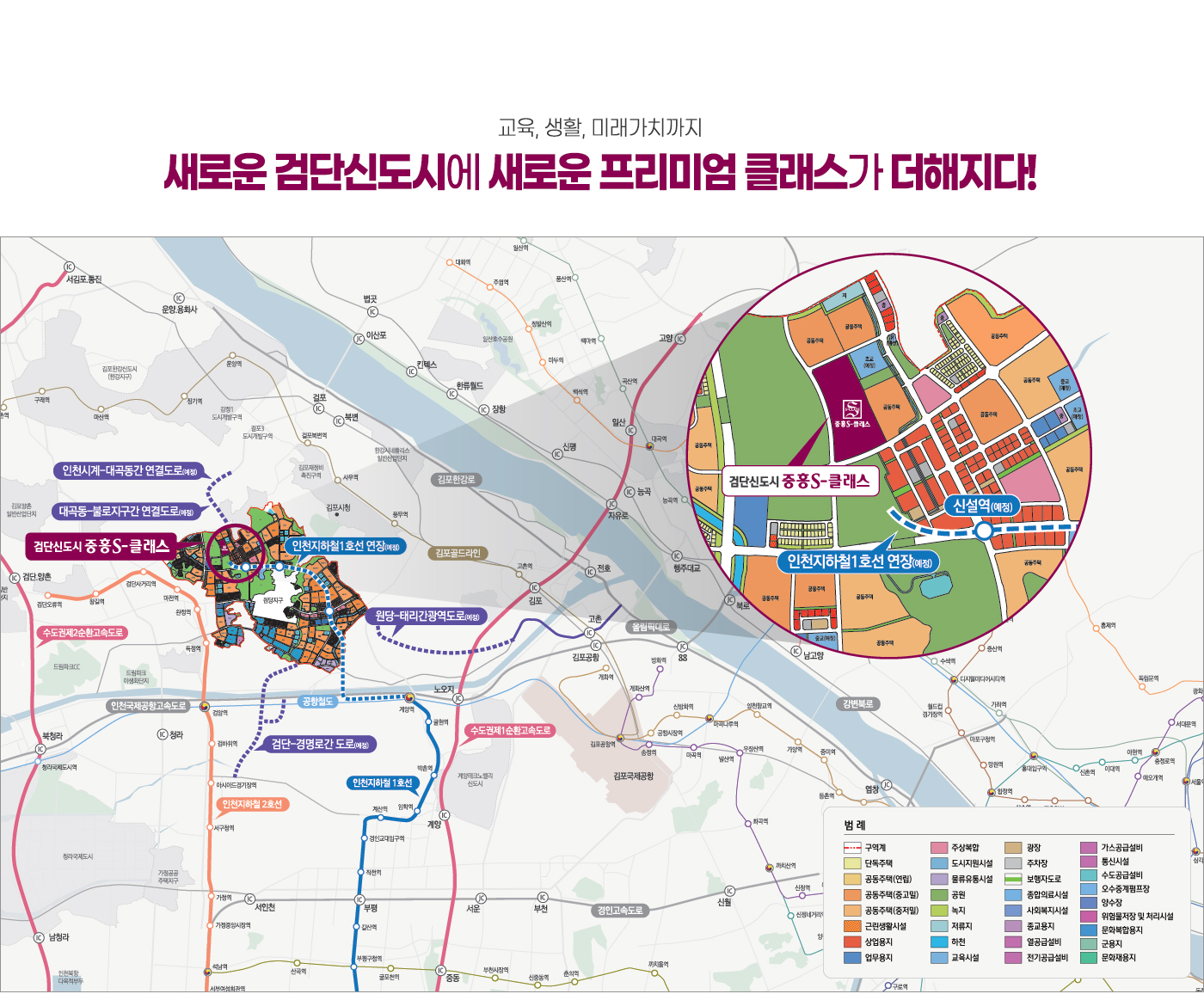 검단신도시 서쪽 방향의 끝자락 부분에 위치하여 서울 접근성 면에서 최근에 입주한 원당동, 당하동의 같은 검단신도시 아파트들보다는 서울 접근성이 떨어지나 신설 예정인 인천 지하철 1호선 연장이 완료되어 가까운 지하철역을 이용한다면 그리 큰 차이는 나지 않을 것으로 보입니다. 지하철 이용 시 공항철도를 이용해 서울역까지는 약 50분, 9 호선 급행을 이용해 강남터미널 역까지는 약 한 시간 정도 소요될 것으로 예상되며 이는 출발역에서 도착역까지 환승시간을 포함한 시간입니다. 지하철역까지는 전면동 기준으로 도보로 5분~10분 예상합니다. 초등학교를 바로 옆에 끼고 있는 초품아 아파트이며 대형 근린공원 두 개와 전면 동 방향으로 호수공원까지 둘러 싸여 있어 자연 친화적인 환경과 조망 측면에서 아주 입지가 뛰어나며 단지 앞 우측에 특별계획구역으로 상업특화거리로 조성되는 커널 콤플렉스가 들어설 예정으로 편리한 상업지구 인프라를 누릴 수 있는 입지라 할 수 있겠습니다.
