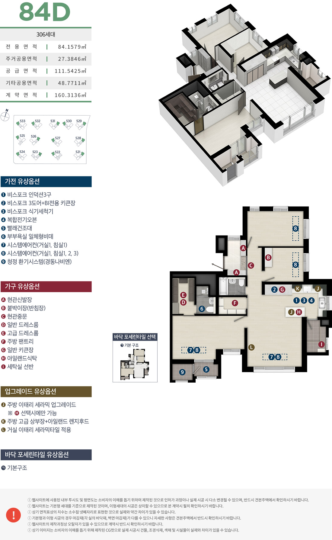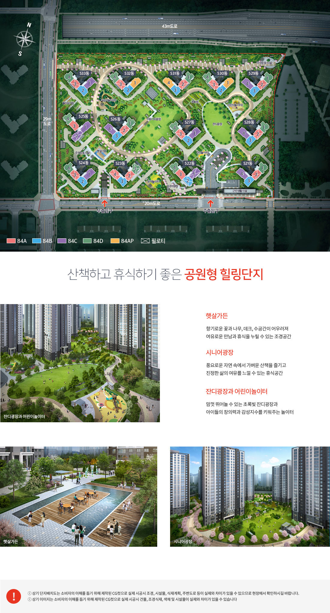 전체 1224 세대 중 84A Type 320세대 , 84B Type 288세대 , 84C Type 244세대 , 84D Type 306세대, 84AP Type 66세대로 구성되어 있습니다.