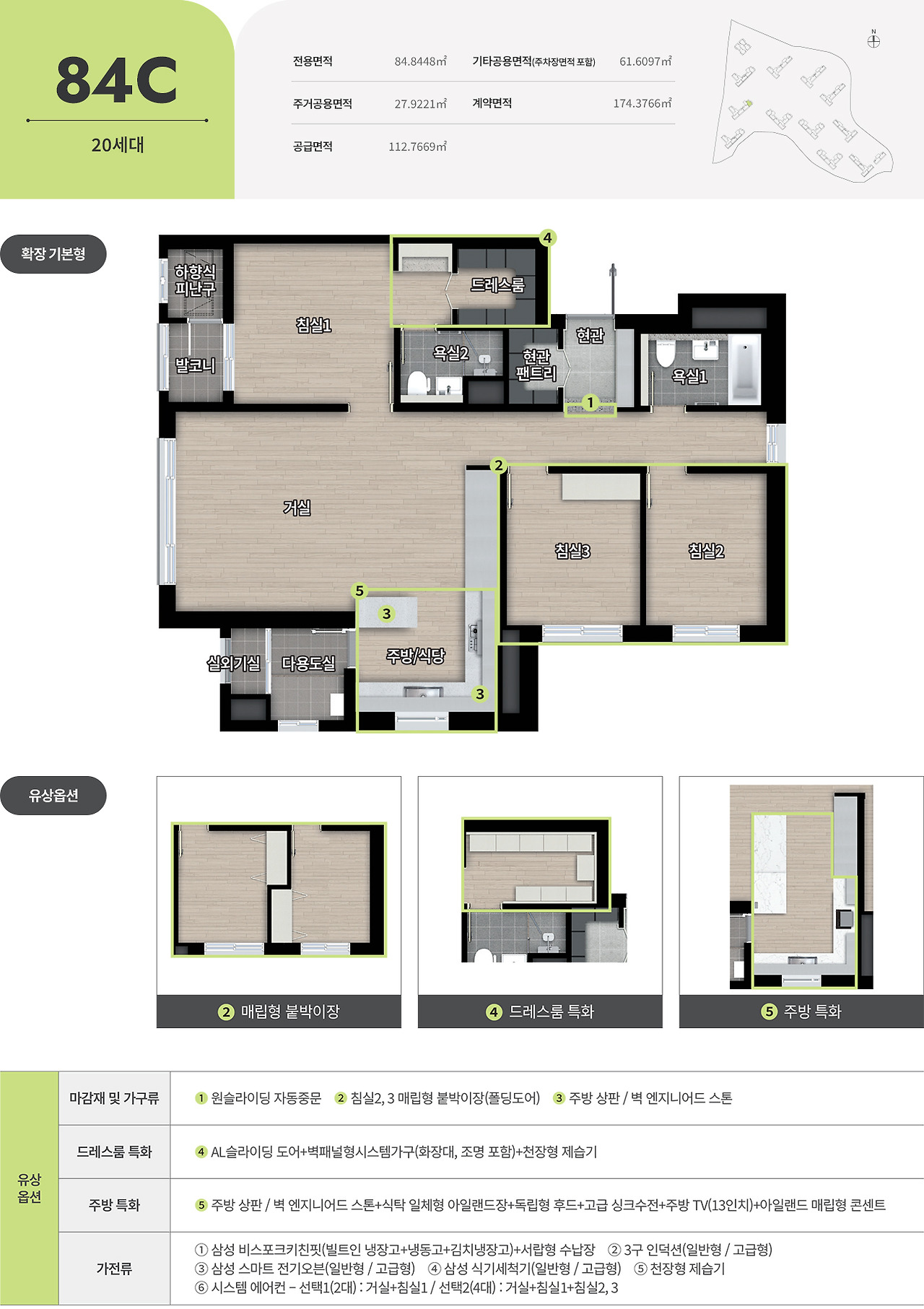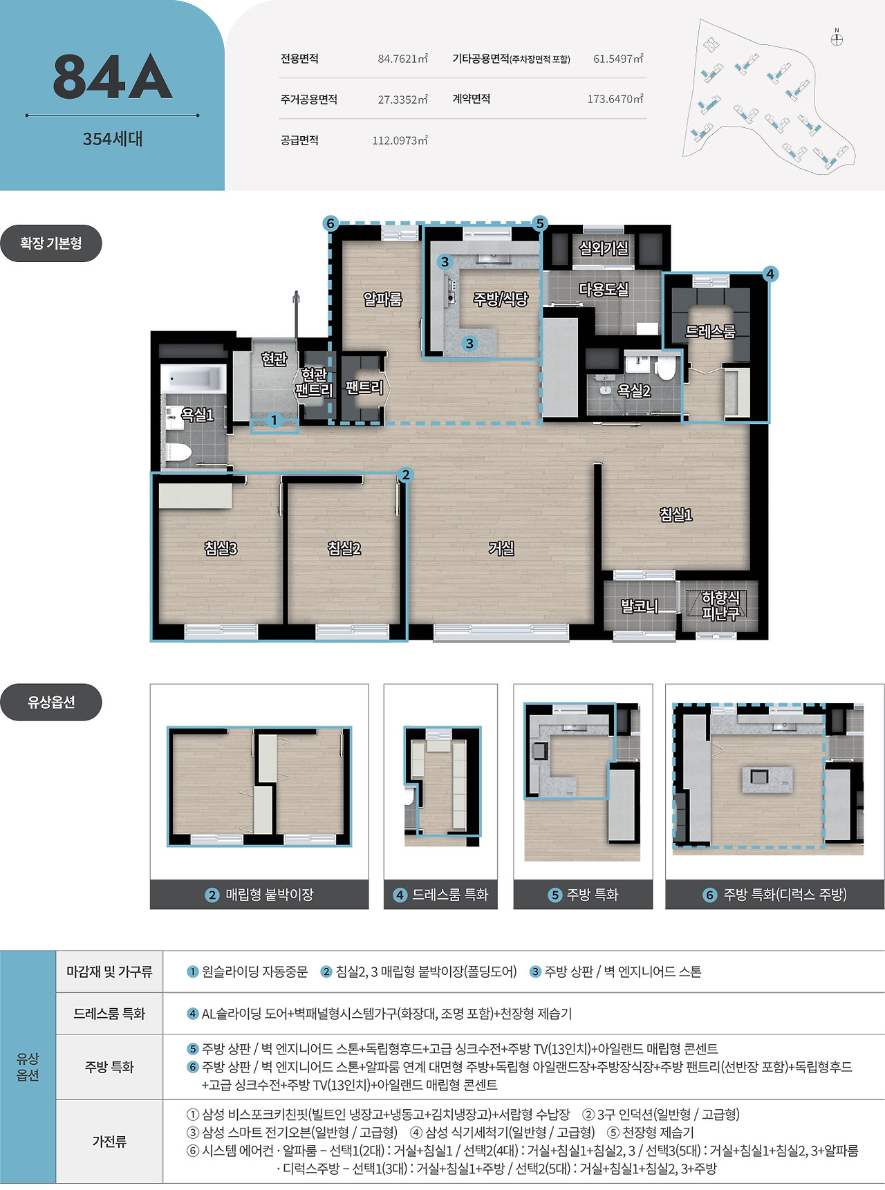 판상형 치고 안방 후면 공간이 넉넉하지 않아 평형대에 비해 드레스룸 공간도 아주 협소합니다. 안방발코니, 부부욕실샤워부스 모두 84A Type과 같이 소소한 아쉬움이 있으며 수납기능은 현관신발장, 팬트리, 복도 팬트리등은 84A 못지않게 잘 챙기고 있습니다. 다용도실 또한 84A Type과 비슷합니다.