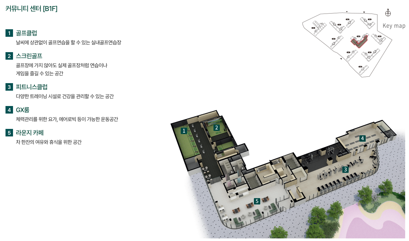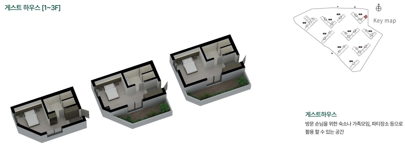 - 게스트하우스, 골프클럽 외에 단독 엘리베이터를 갖춘 스카이라운지등의 특화커뮤니티