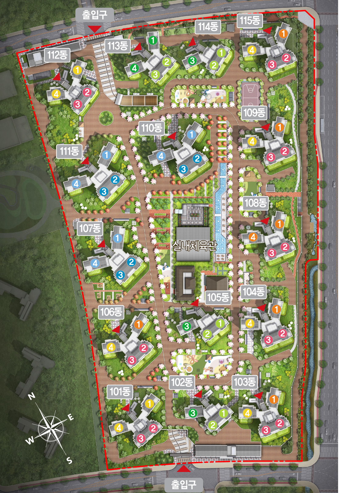 전체 남향배치이며 어느 동 배치이던 일조권 영향은 일부 저층을 제외하고는 없을 것 같습니다.