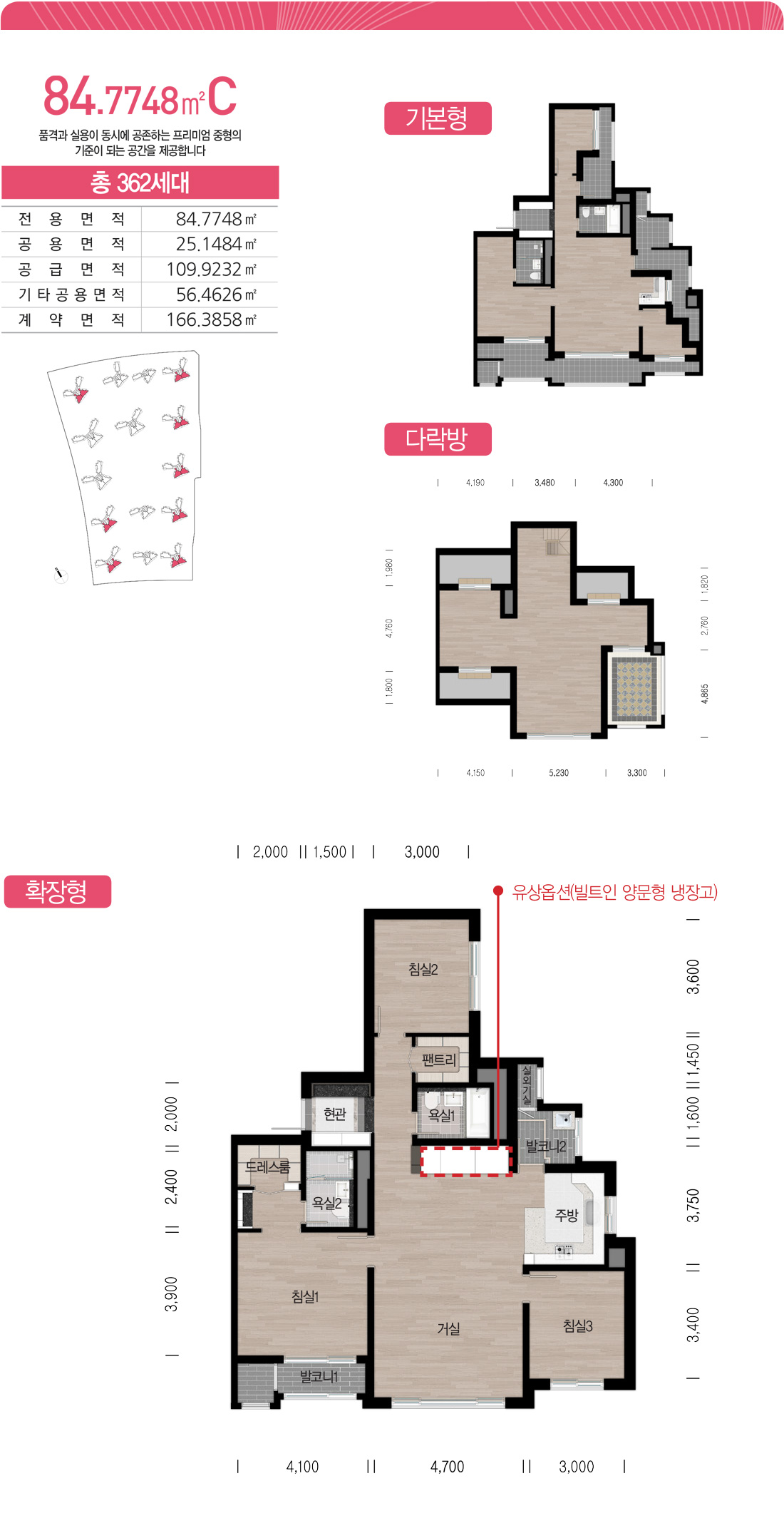 84A Type을 크기에 비례하여 사이즈를 키운 평면입니다.