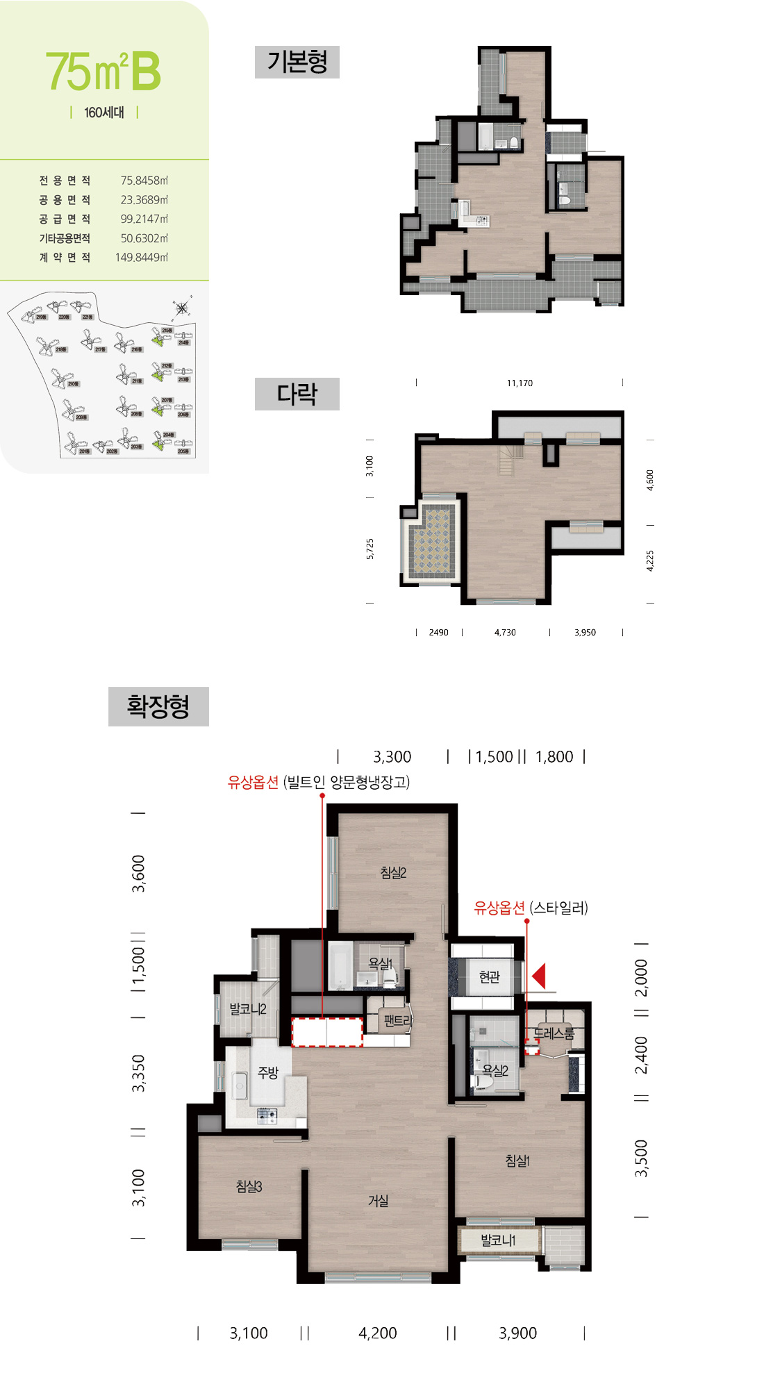 84A Type을 크기에 비례하여 사이즈를 키운 평면입니다.