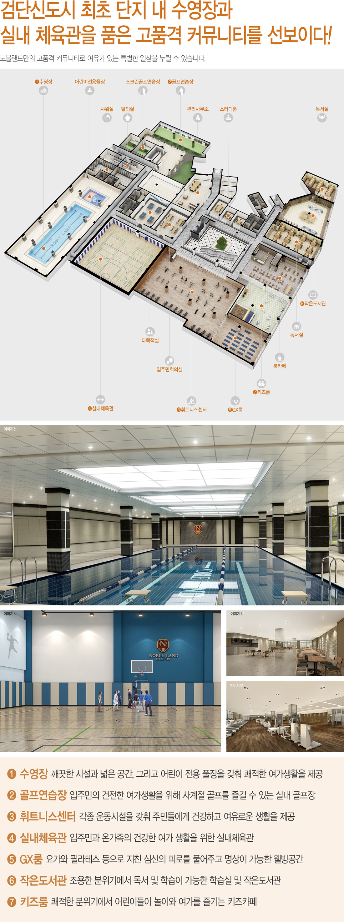 건설사가 먼저 분양한 디에트로 더 펠리체에 이어 이번에는 더욱더 커뮤니티 시설을 특화하여 유아풀장을 포함한 수영장, 실내체육관, 스크린을 포함한 실내 골프연습장, 남녀독서실, 작은 도서관, 헬스클럽, 키즈룸, 북카페, 다목적 실등 다양한 커뮤니티 특화 시설을 갖추고 있습니다.