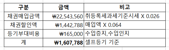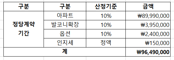 정당계약 시 필요한 금액은 아래와 같습니다.
