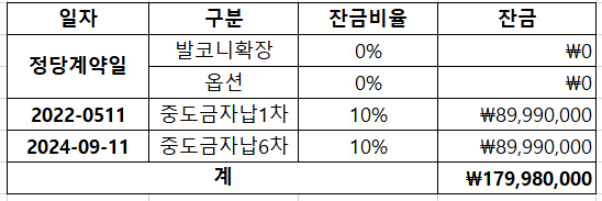 - 발코니 확장 / 옵션 비용 잔금은 아래와 같습니다.
