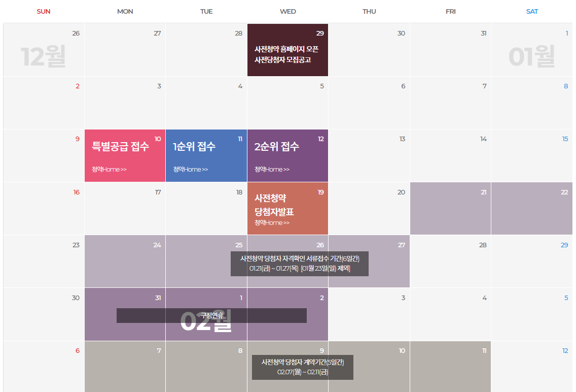 당 아파트의 본 청약시기는 2022년 9월 예정이고 입주 예정일은 2025년 6월입니다. 사전 청약 입주자 모집공고일은 12.29(수) 일 발표되었으며 청약일정은 아래와 같습니다.