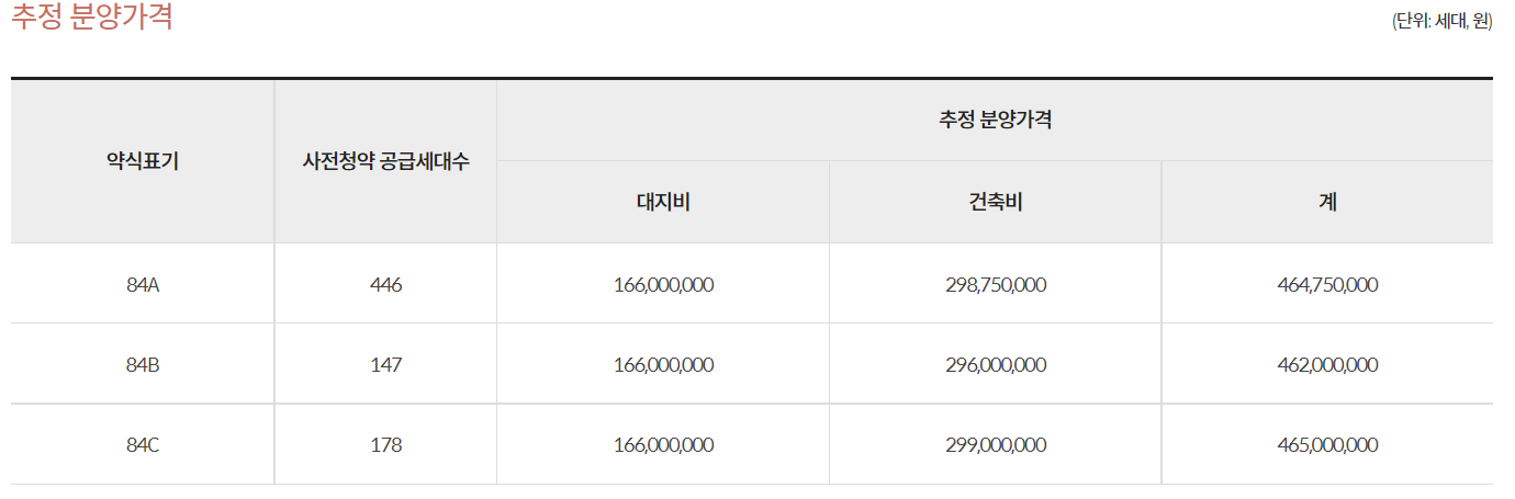추정 분양가