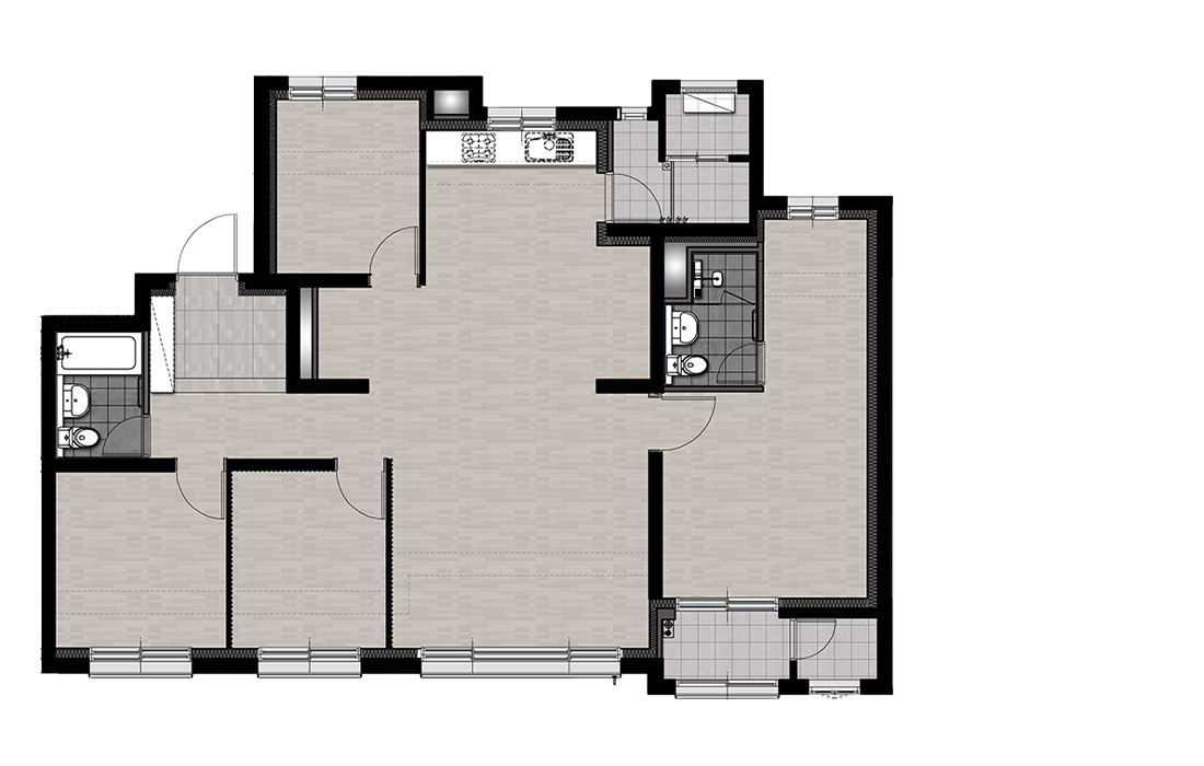 판상형 4 Bay 구조에서 주방 쪽 후면 발코니 대신 안방 쪽 측면 발코니를 적용한 구조입니다.