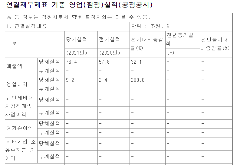 작년 크리스마스쯤에 사상 최대의 실적이 예상됨에도 최고점을 찍고 30% 하락하는 와중에 회사 물적분할까지 예고하여 시끄러울 때 얼마간의 회사 장기근속 포상금으로 매수한 POSCO가 오늘 잠정실적 공시가 나왔습니다.